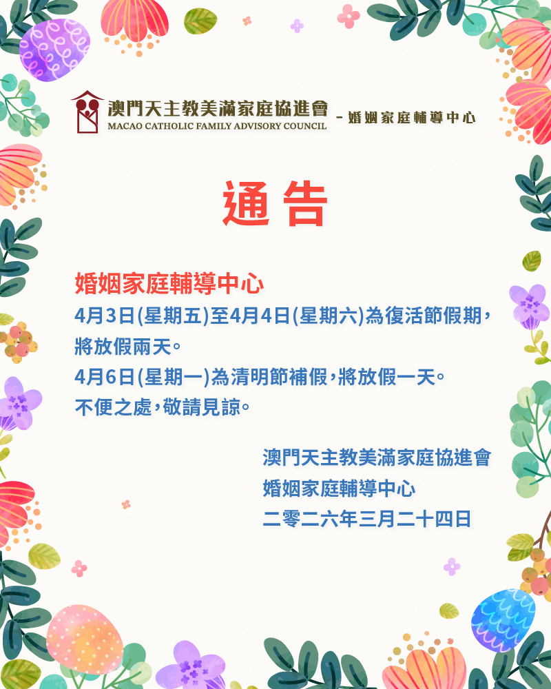 2026清明節和復活節假期( 通告)