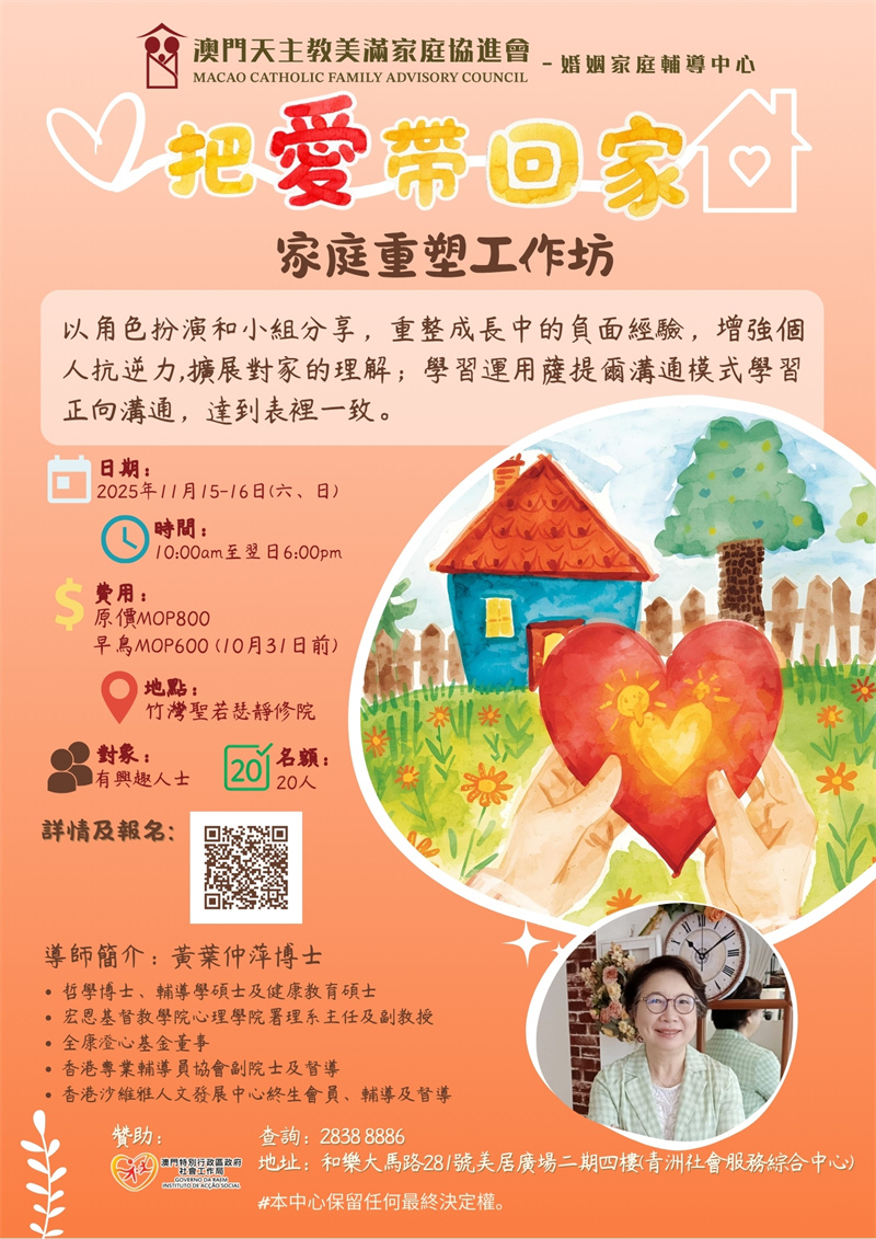 費用:原價MOP800 早鳥MOP600(10月3/日前)